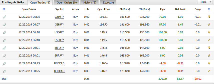 Currency Pair: EURJPY/GBPJPY/GBPUSD/EURUSD/USDCHF/USDJPY/USDCAD